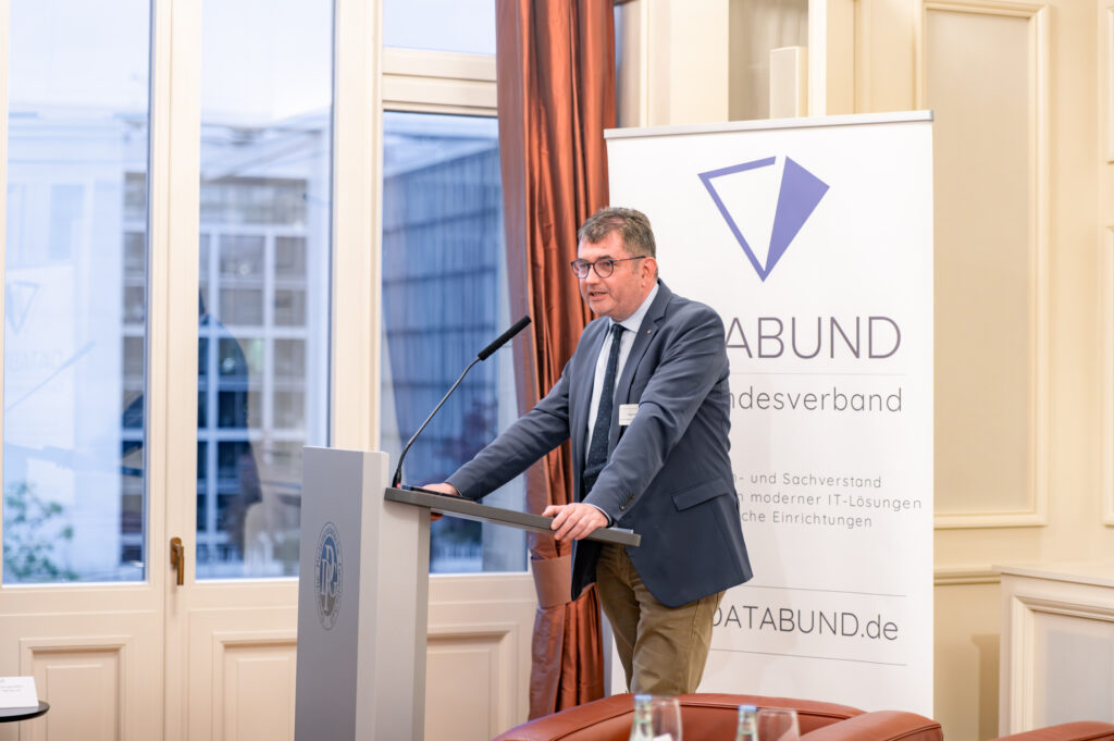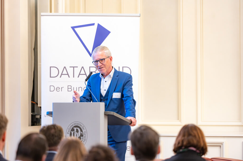 Der DATABUND e.V. hat am 09.10.2025 die 3. Parlamentarische Digitalnacht veranstaltet. Unter Schirmherrschaft von Dr. Markus Reichel (CDU) konnte die Veranstaltung wie im vergangenen Jahr wieder in der Deutschen Parlamentarischen Gesellschaft (DPG) durchgeführt werden. Das Interesse seitens der Abgeordneten und DATABUND-Mitgliedern war groß. Der Kaisersaal war voll besetzt. Die Panels und Keynotes haben dabei wieder viele Bereiche der Verwaltungsdigitalisierung betrachtet. So wurden Themen wie die Registermodernisierung, EUDI-Wallet und digitale Identitäten behandelt. Weiterhin ging es auch um Zukunftsfragen und Eckpunkte der modernen Verwaltung. Nach der Keynote von der Staatssekretärin Prof. Dr. Luise Hölscher (Bundesministerium für Digitales und Staatsmodernisierung), diskutierte Wirtschaft, Wissenschaft und Politik in zwei folgenden Panels die Verwaltungsdigitalisierung.