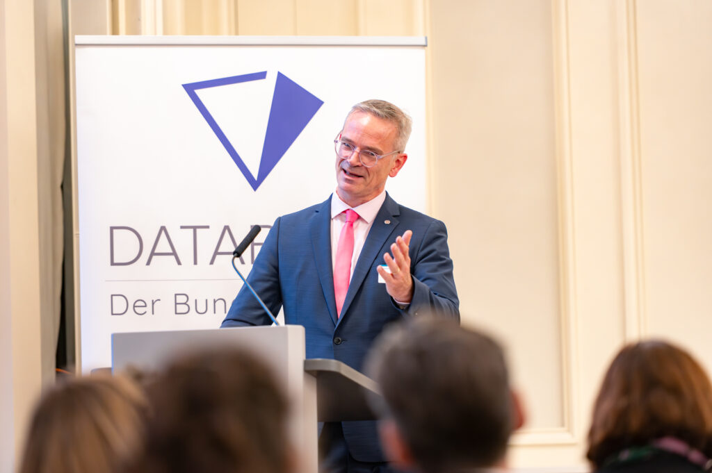 Das 2. Panel „Die Morgen-Verwaltung; Wie unsere Verwaltung zukünftig digital arbeitet und sich verändern muss“ wurde vom Jan Luther (DATABUND-Mitglied HSH, VOIS) moderiert. Neben Stephan Hauber (Stellv. Vorstandsvorsitzender DATABUND e.V.) und Prof. Dr. Sarah Rachut (TU Braunschweig Öffentliches Recht, Recht der Digitalisierung & Hochschulrecht TU München, Center for Digital Public Services) als Impulsgeber waren MdB Johannes Schätzl (Digitalpolitischer Sprecher der SPD-Bundestagsfraktion, Obmann im Bundestagsausschuss für Digitales und Staatsmodernisierung), MdB Sonja Lemke (Die Linke Mitglied im Bundestagsausschuss für Digitales und Staatsmodernisierung) und Schirmherr der Veranstaltung MdB Dr. Markus Reichel (CDU, Mitglied im Ausschuss für „Digitales“ und „Arbeit und Soziales“) als Panellisten auf dem Podium.