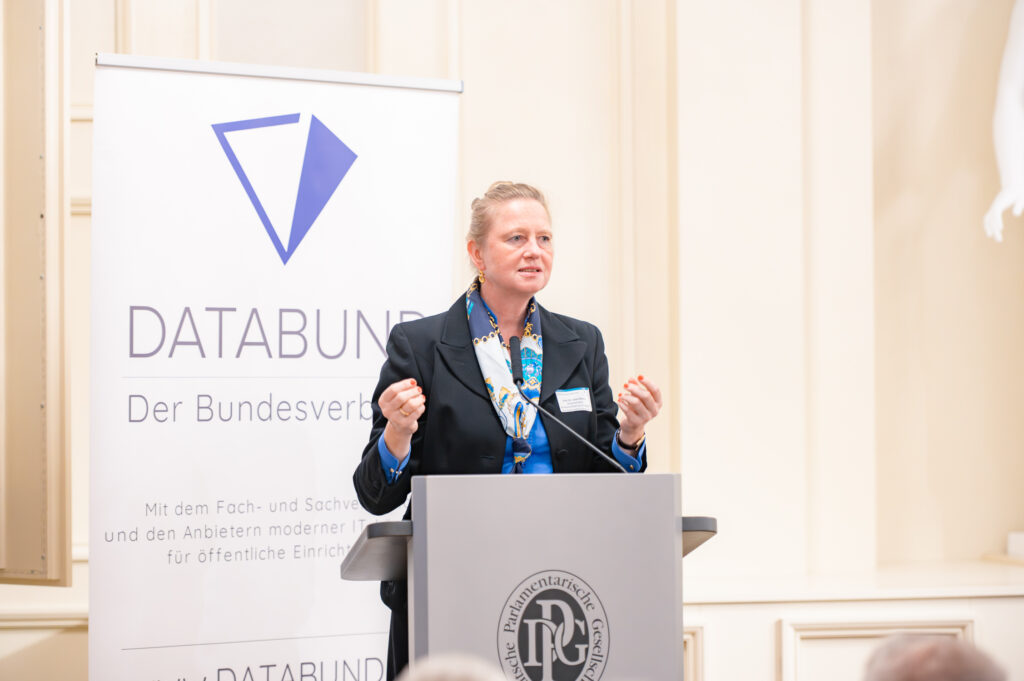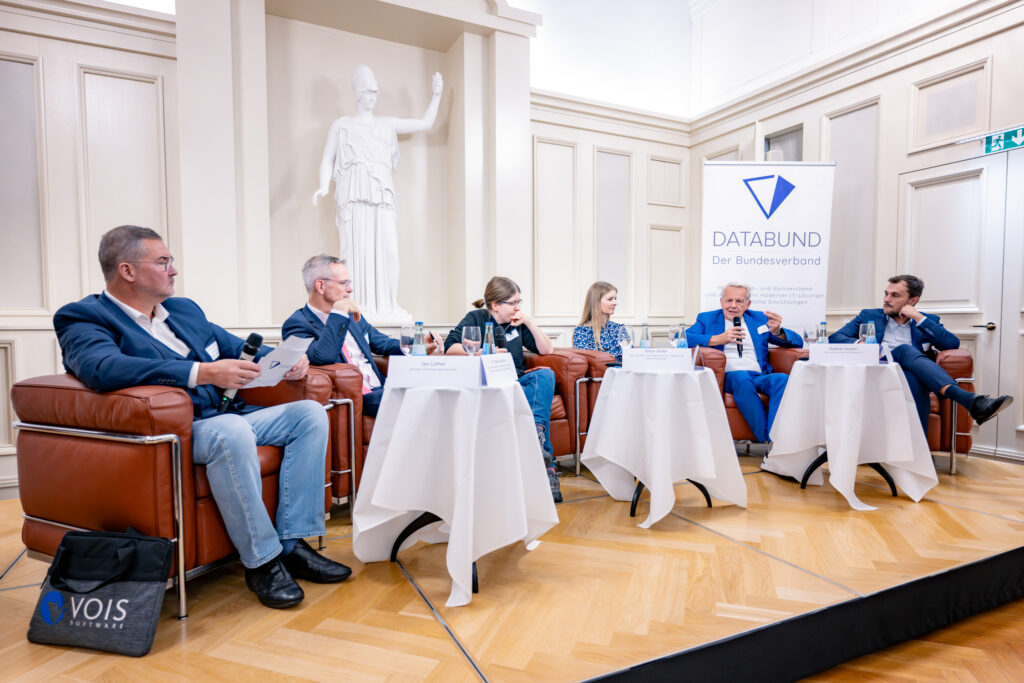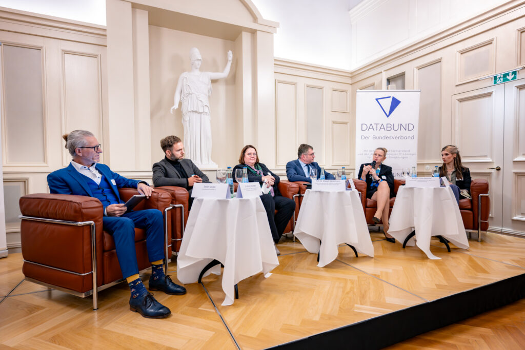 Prof. Dr. Margit Seckelmann (Universität Hannover Professorin für Öffentliches Recht und das Recht der digitalen Gesellschaft) mit einem Impuls und als Panellisten Sirko Scheffler (Vorstandsvorsitzender DATABUND e.V.), MdB Dr. Moritz Heuberger (Bündnis 90 / Die Grünen Bundestagsausschuss für Digitales und Staatsmodernisierung), MdB Donata Vogtschmidt (Die Linke, Obfrau im Bundestagsausschuss für Digitales und Staatsmodernisierung Sprecherin für Digitalpolitik und Cybersecurity) vertreten.
